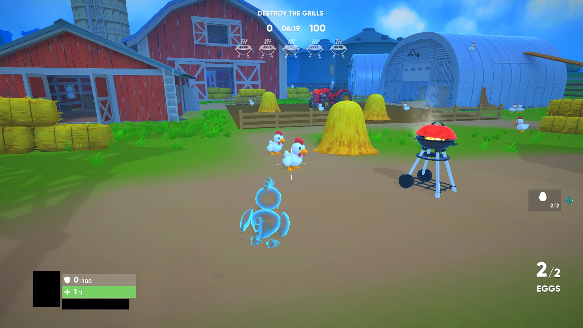 The chickens task is to destroy five grills and at the same time ensure that at least one Bok Bok survives.